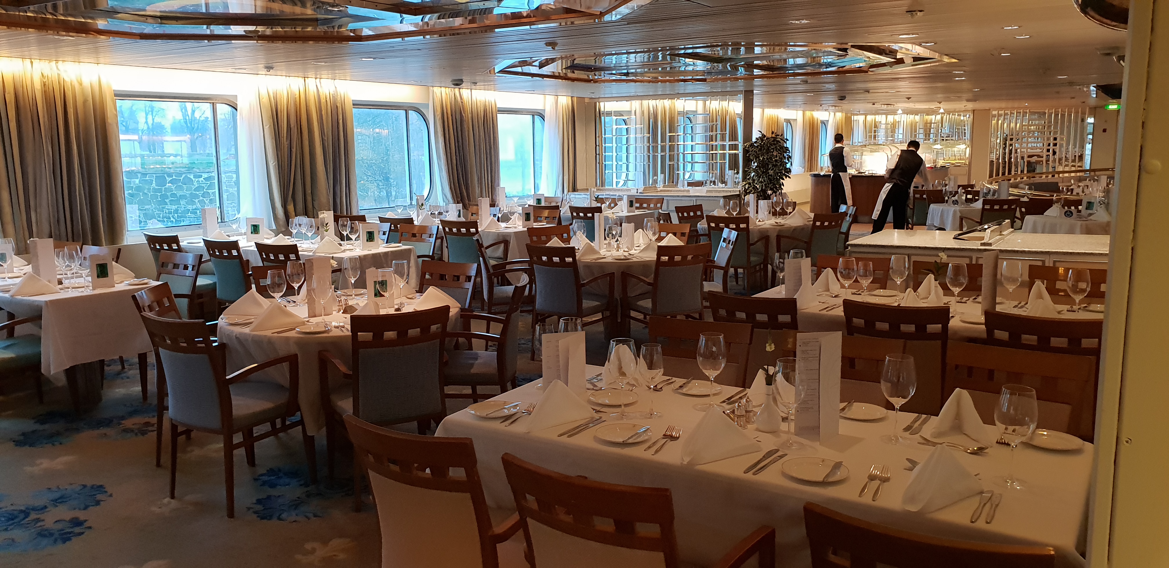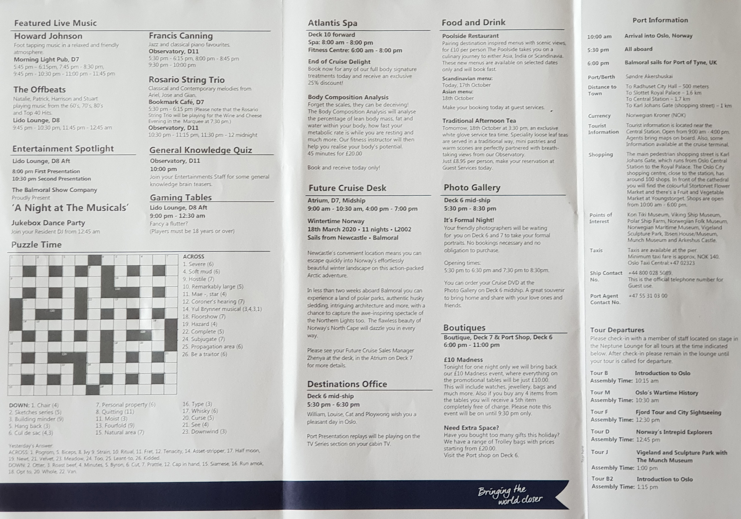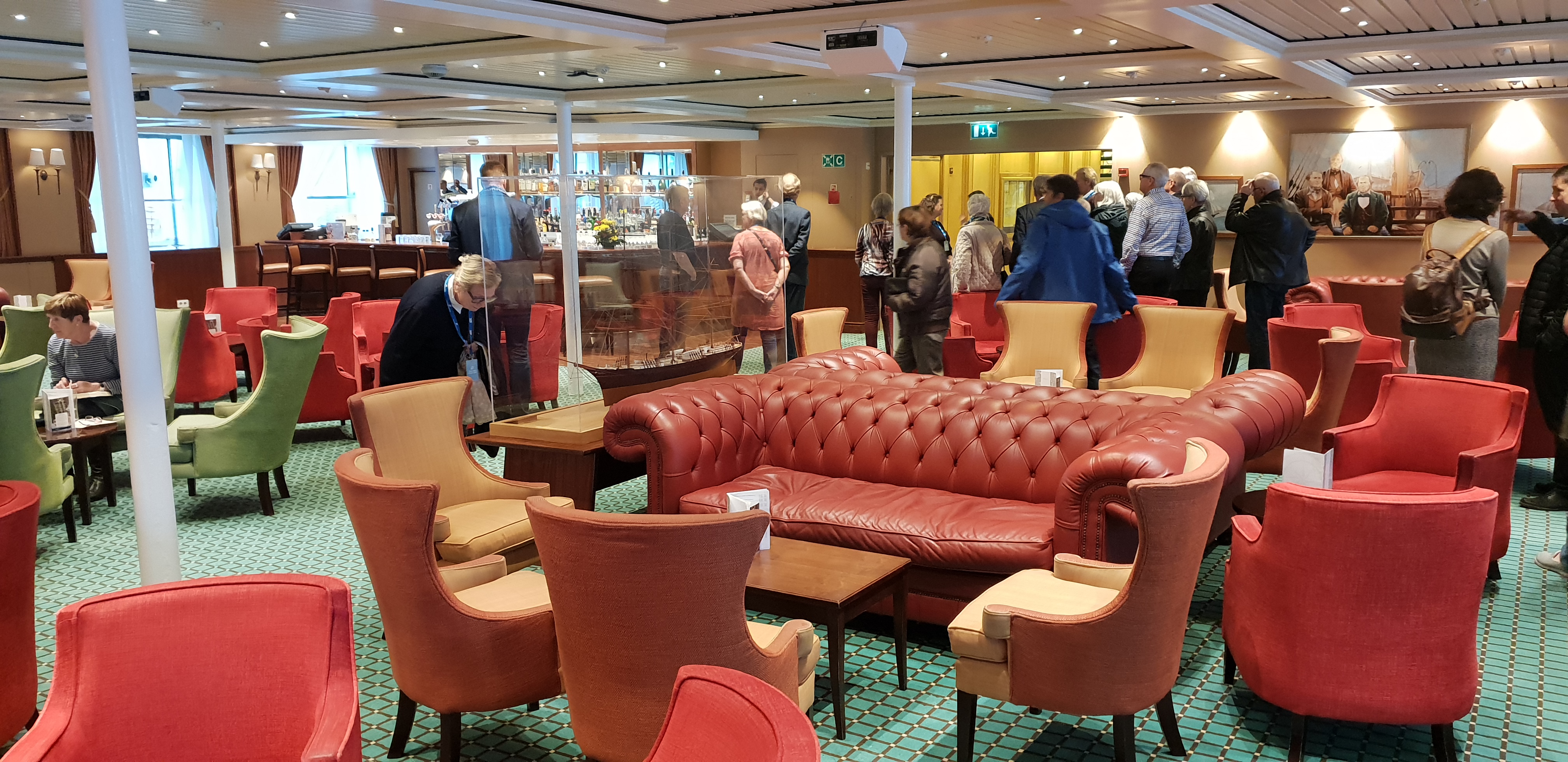 Skipet har base i Storbritannia (Southampton, Newcastle og Rosyth (Edinburgh)), og ikke overraskende er de fleste passasjerene britiske. Stilen ombord minner oss også om et klassisk britisk cruise. For sammenligning ville vi ha beskrevet det som en upscale Hurtigruten.
