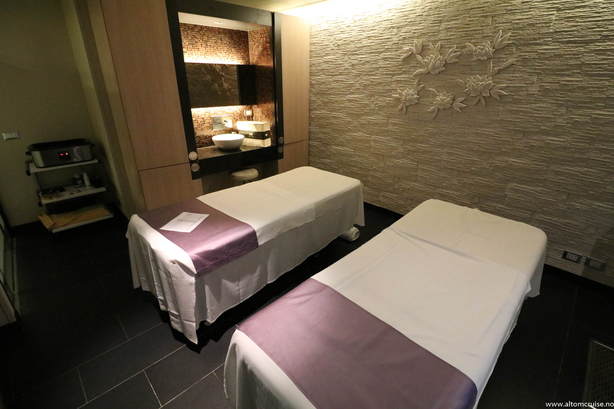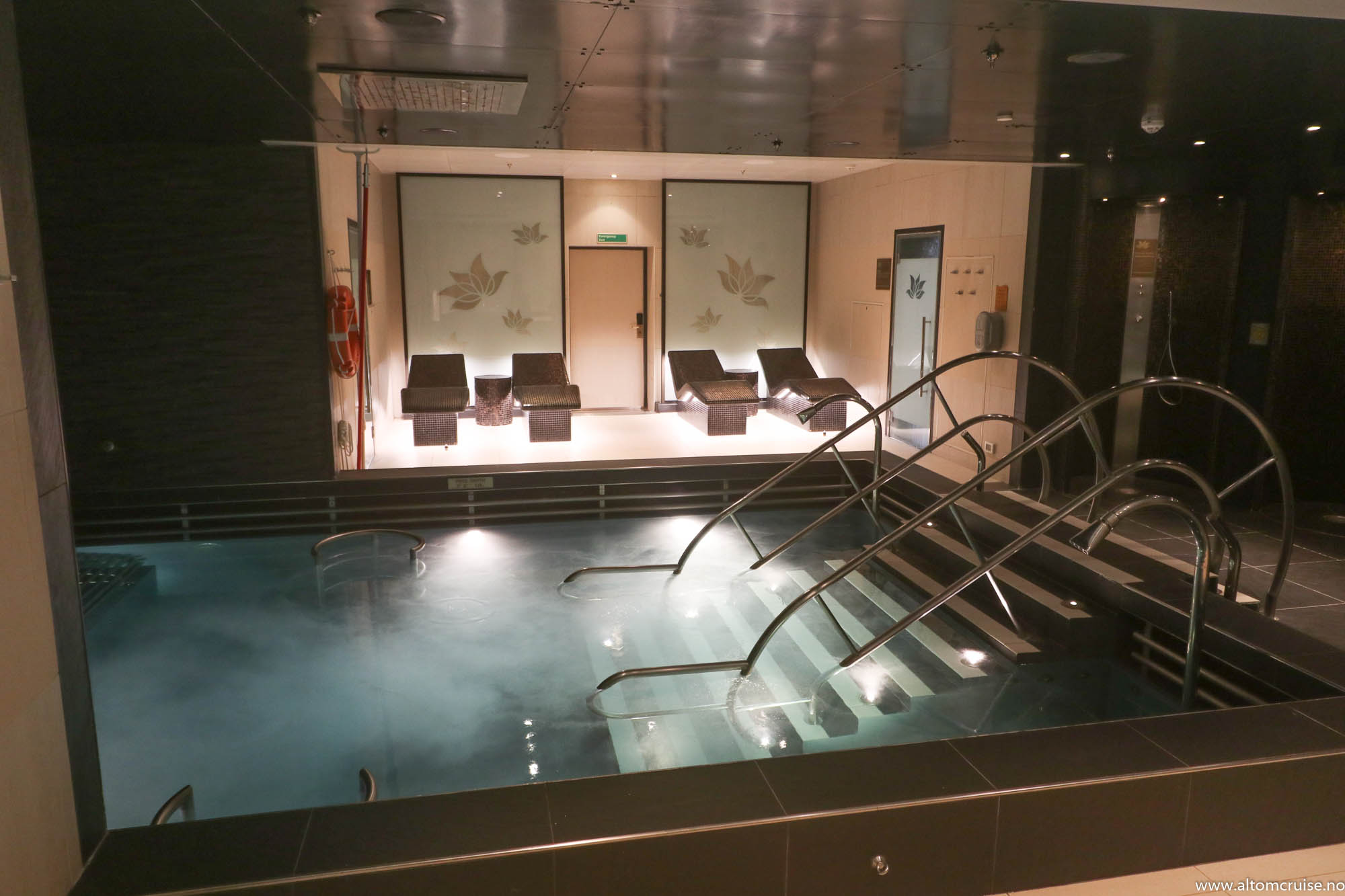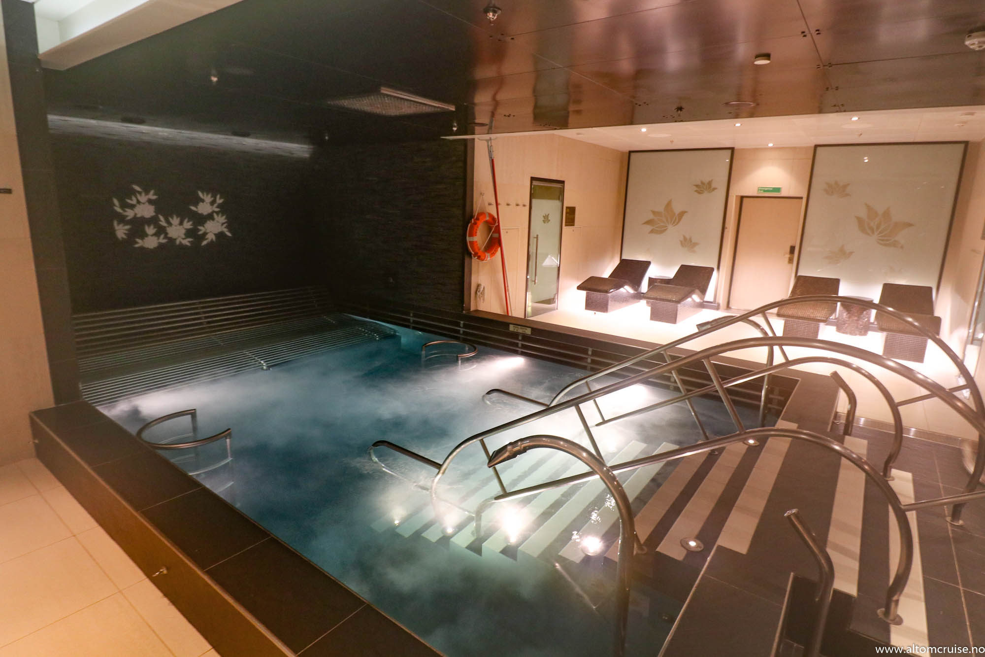 Spa-området tilbyr avslappende varme stoler, basseng og dusjer. Det er også flere massasjerom og mulighet for par-massasje.