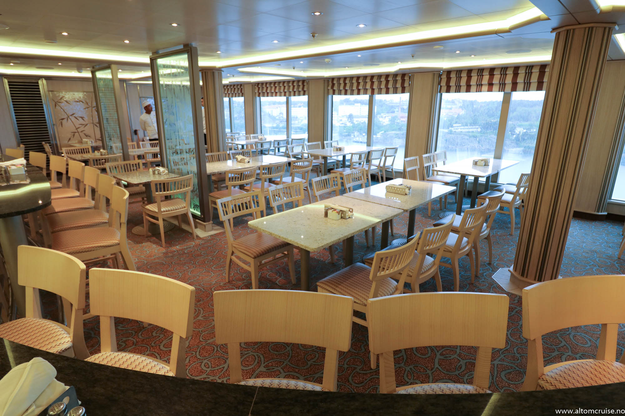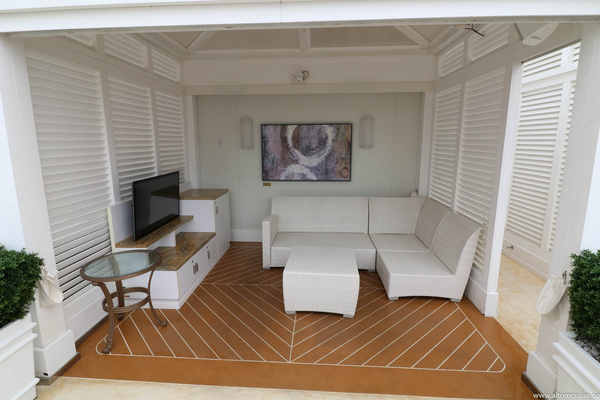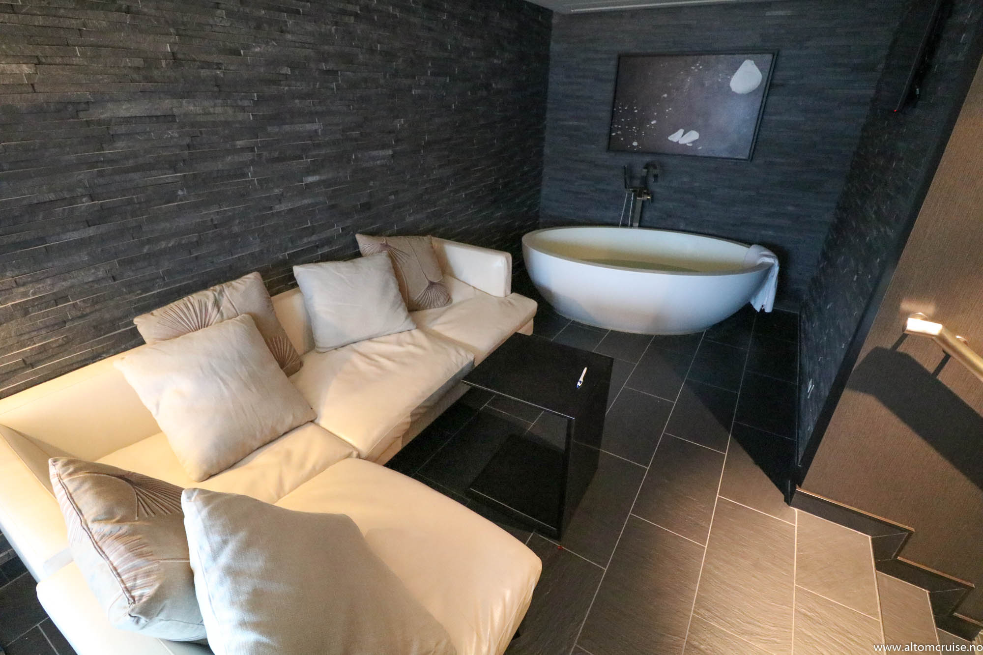 Fellesområdene er stilfult utført, og hele skipet har en rolig atmosfære som vil passe voksne par godt.