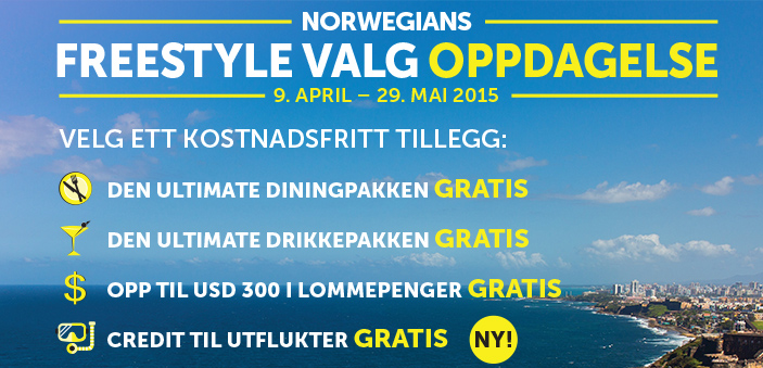 I perioden 9. april – 29. mai 2015 kan du få opptil 4 bonustilbud med det populære rederiet Norwegian Cruise Line.