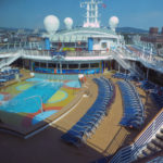 Første stopp er Viking Crown Lounge, en klassiker hos Royal Caribbean i toppen av skipet. Derifra har vi også fin utsikt utover mot hovedbassenget