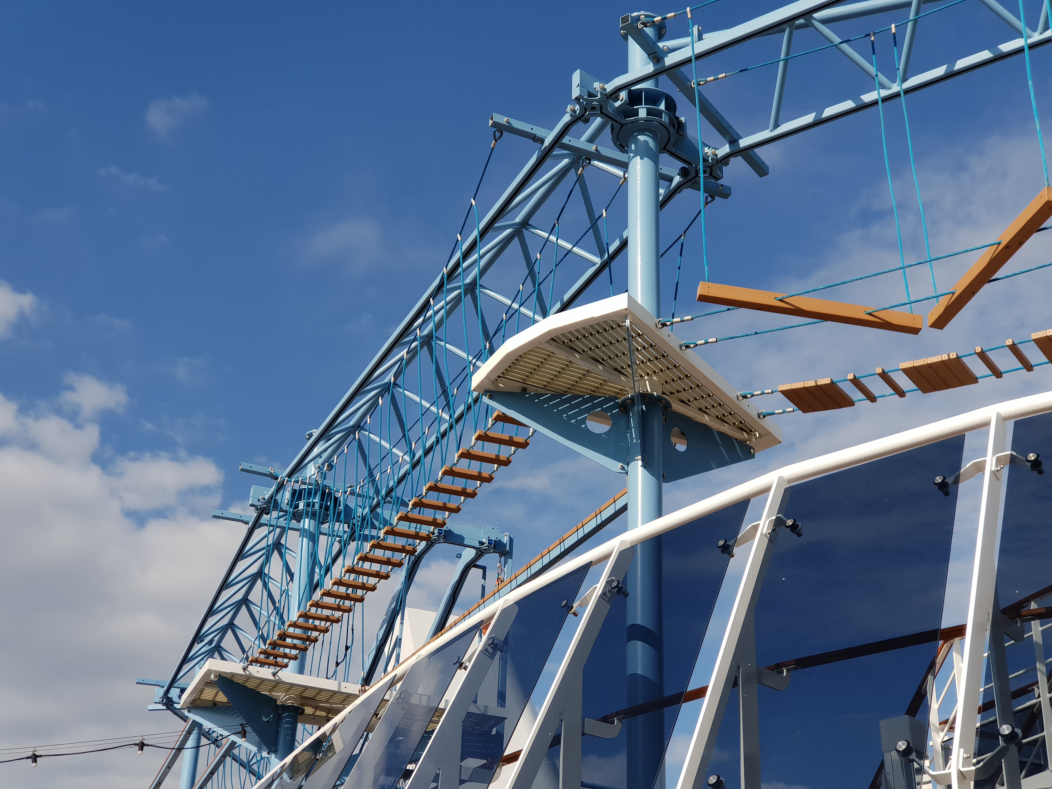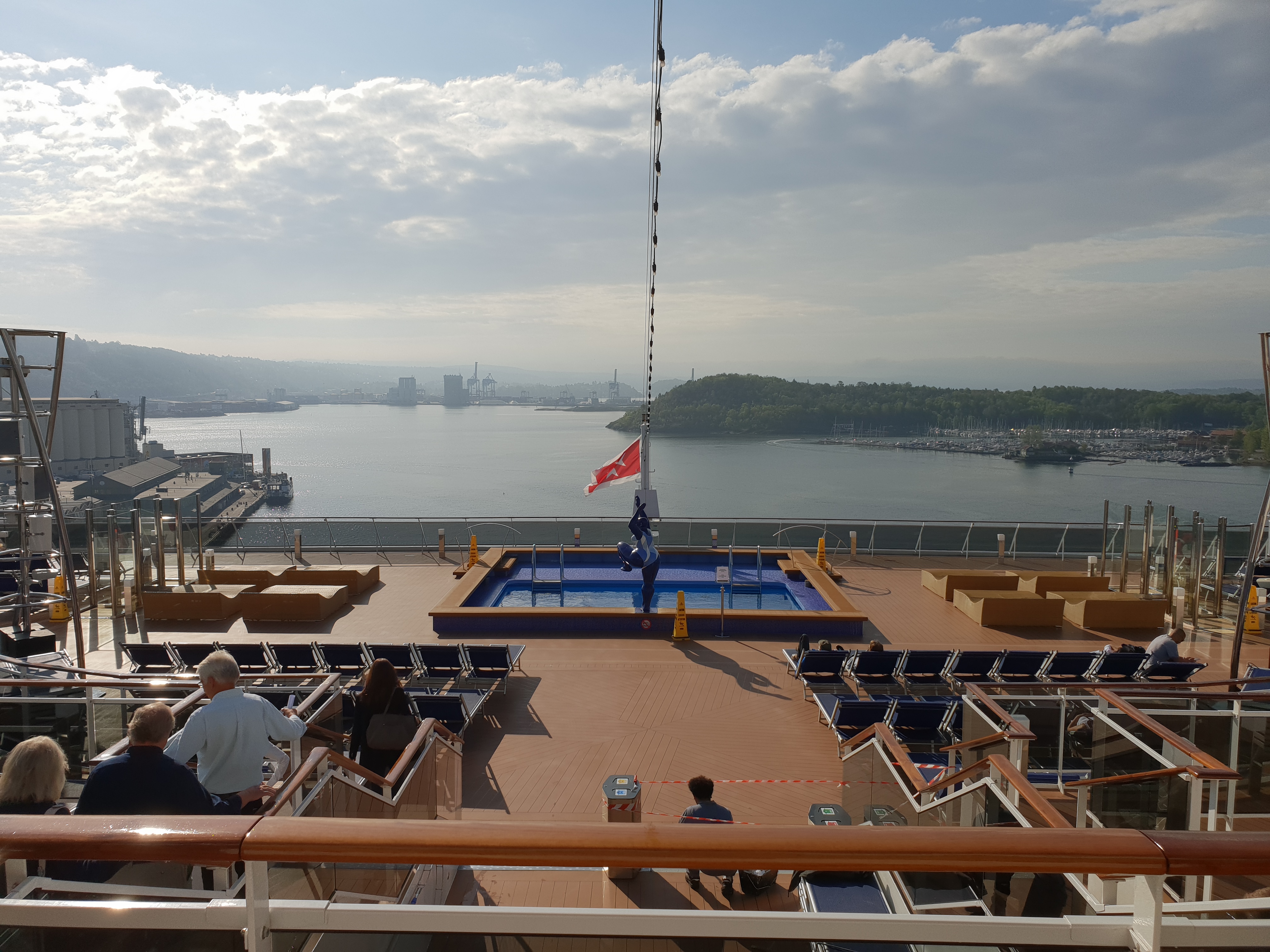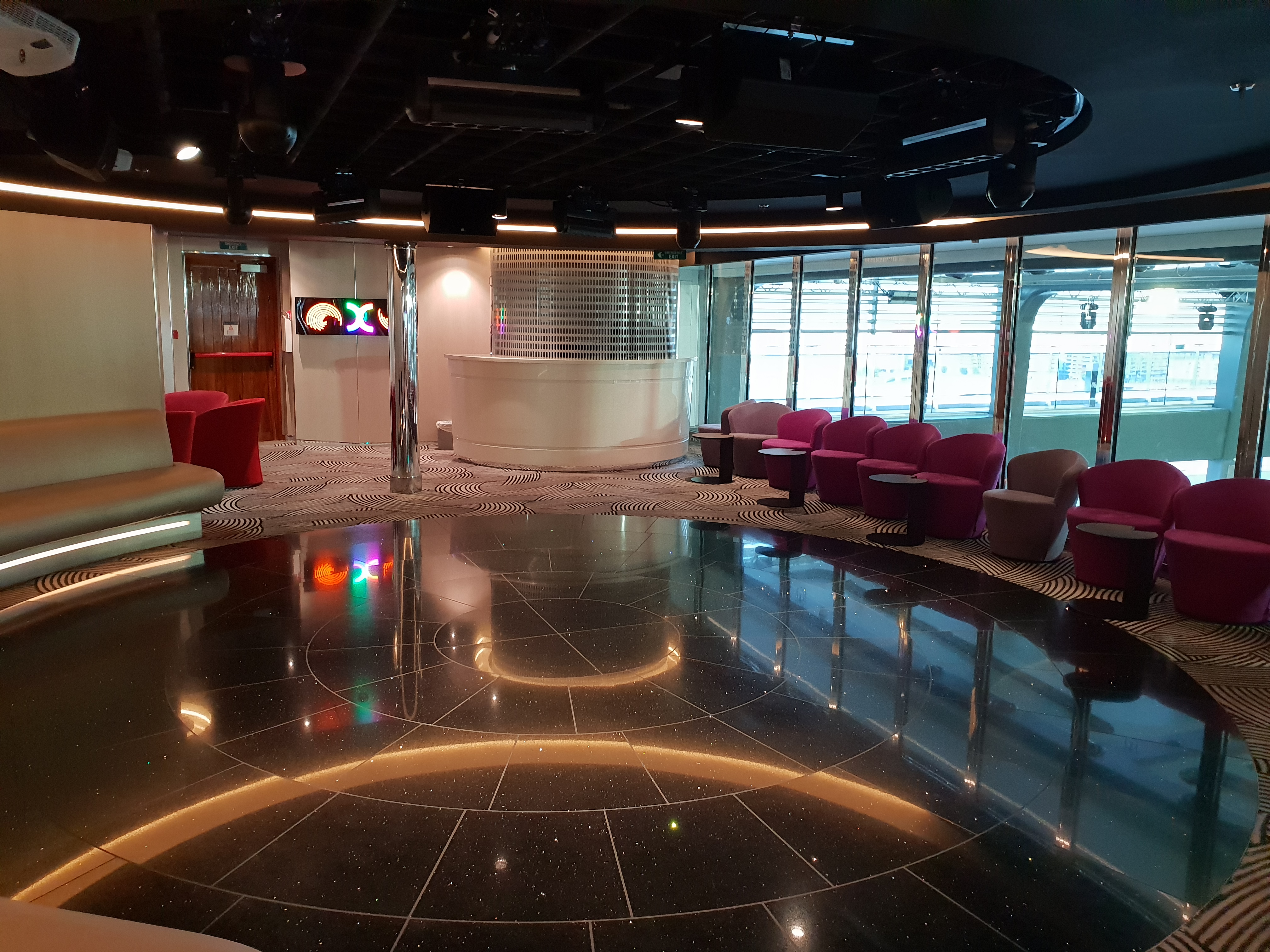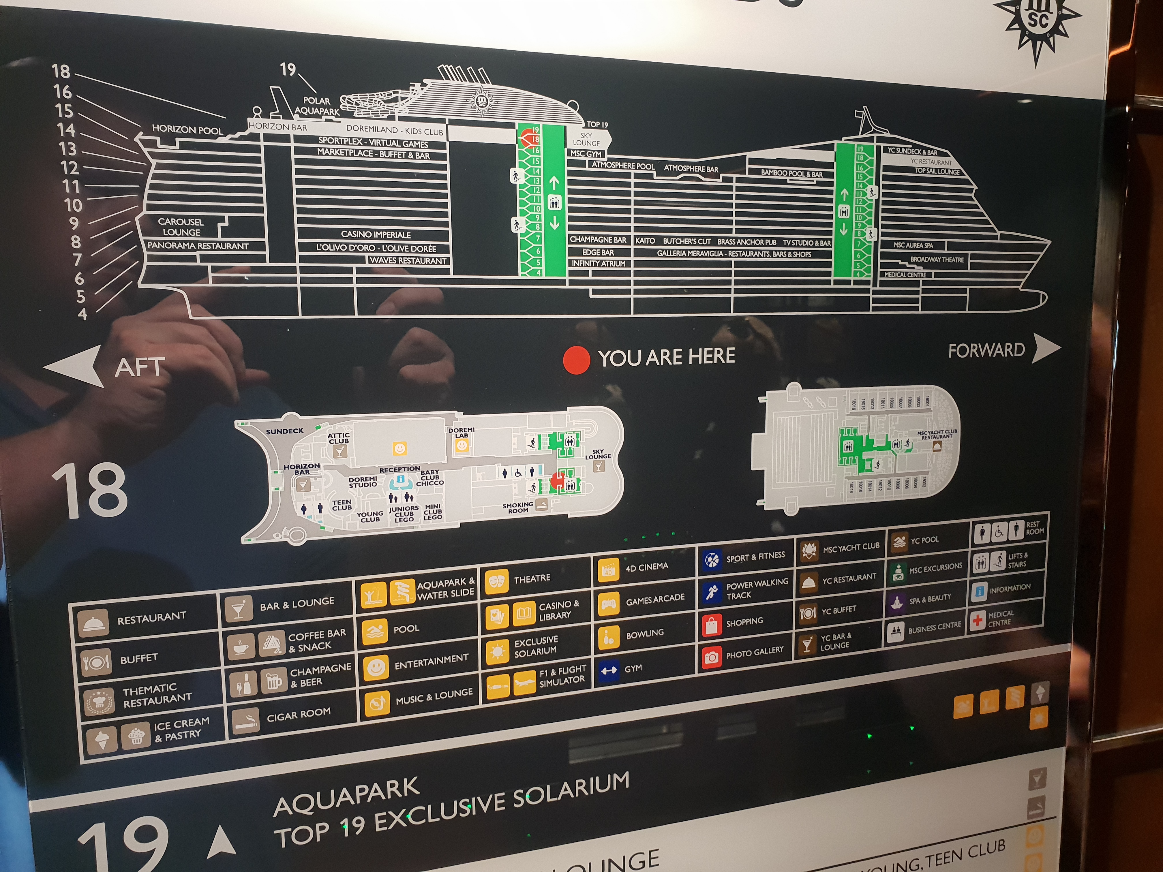 Det glitrer fra Swarovski-krystallene i trappene i Infinity AtriumAlt er fortsatt skinnende nytt i Infinity AtriumHeisområdet føles på en måte romslig, men kanskje en anelse mørkDet så ut til at de fleste heisene ikke har noen utsikt, men bruk av mye reflekterende flater gjør at det ikke blir for mørktOversikt over dekkeneMye åpent dekk langs siden av skipet med plass for gåing og jogging