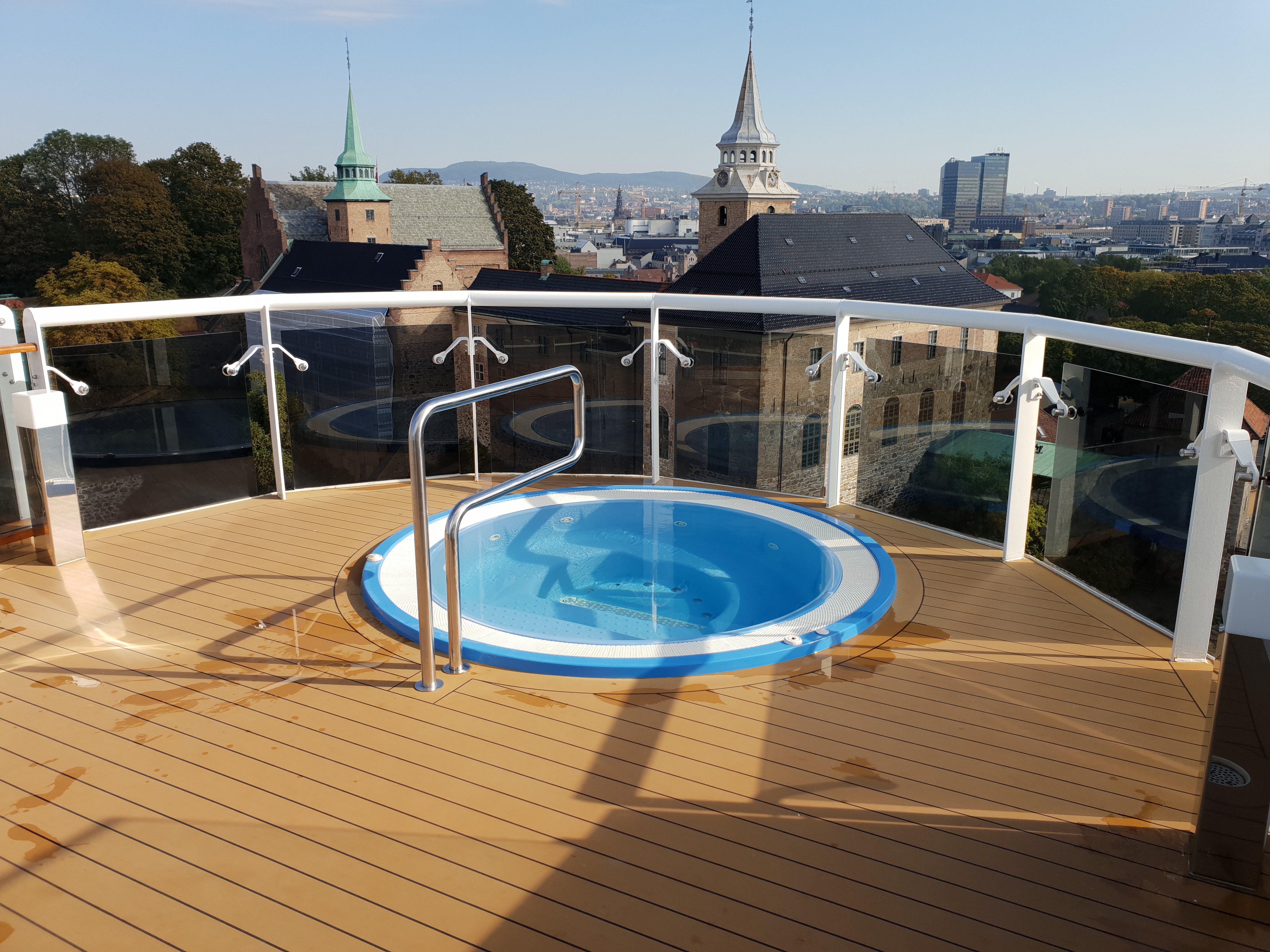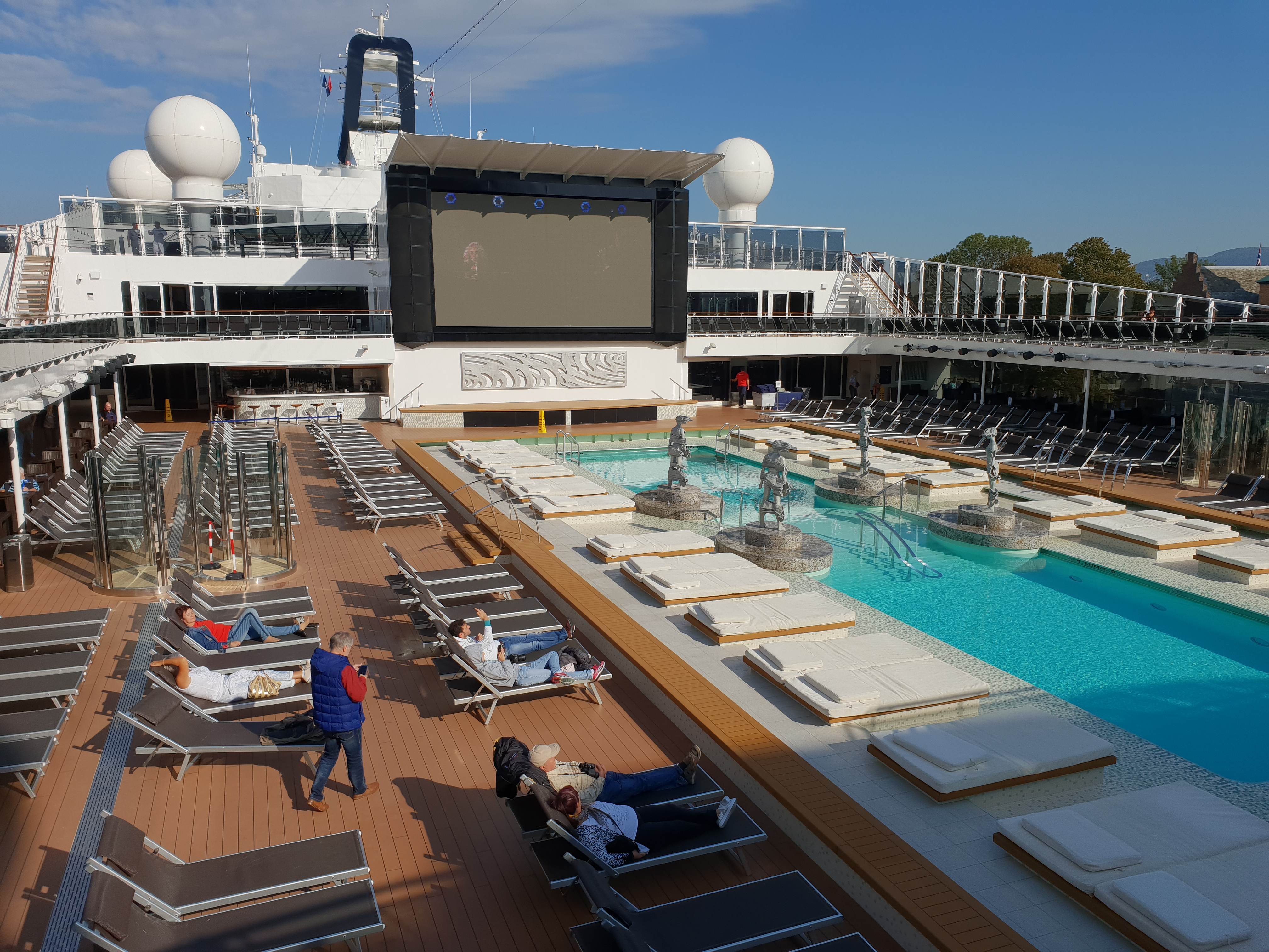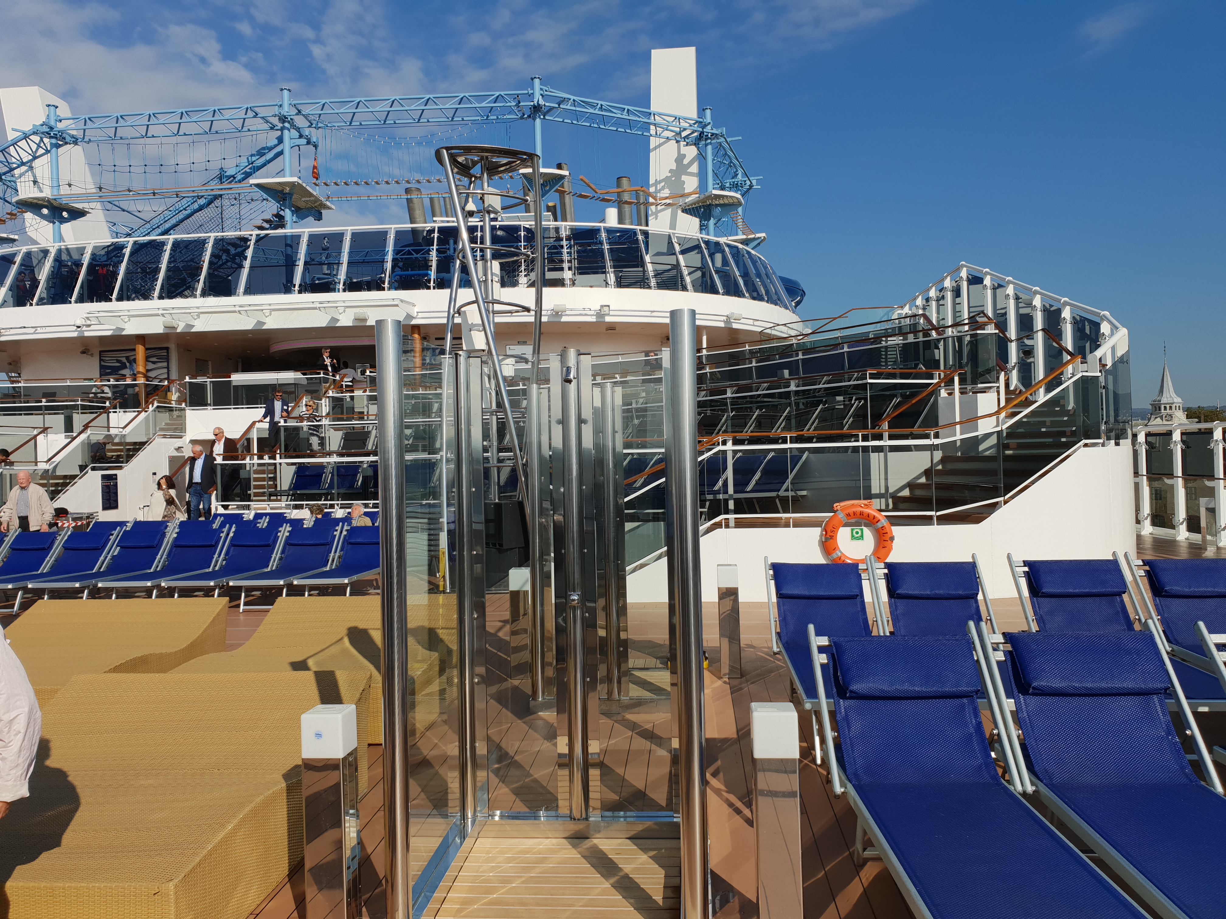 Horizon Amphitheatre og pool bak på dekk 16.Mulighet for å dusje ute på dekkHovedbassenget, Atmosphere pool, på dekk 15Rundt omkring på bassengdekket finner vi små boblebad som henger ut over sidenBroadway TheatreMSC Aurea Spa på dekk 7