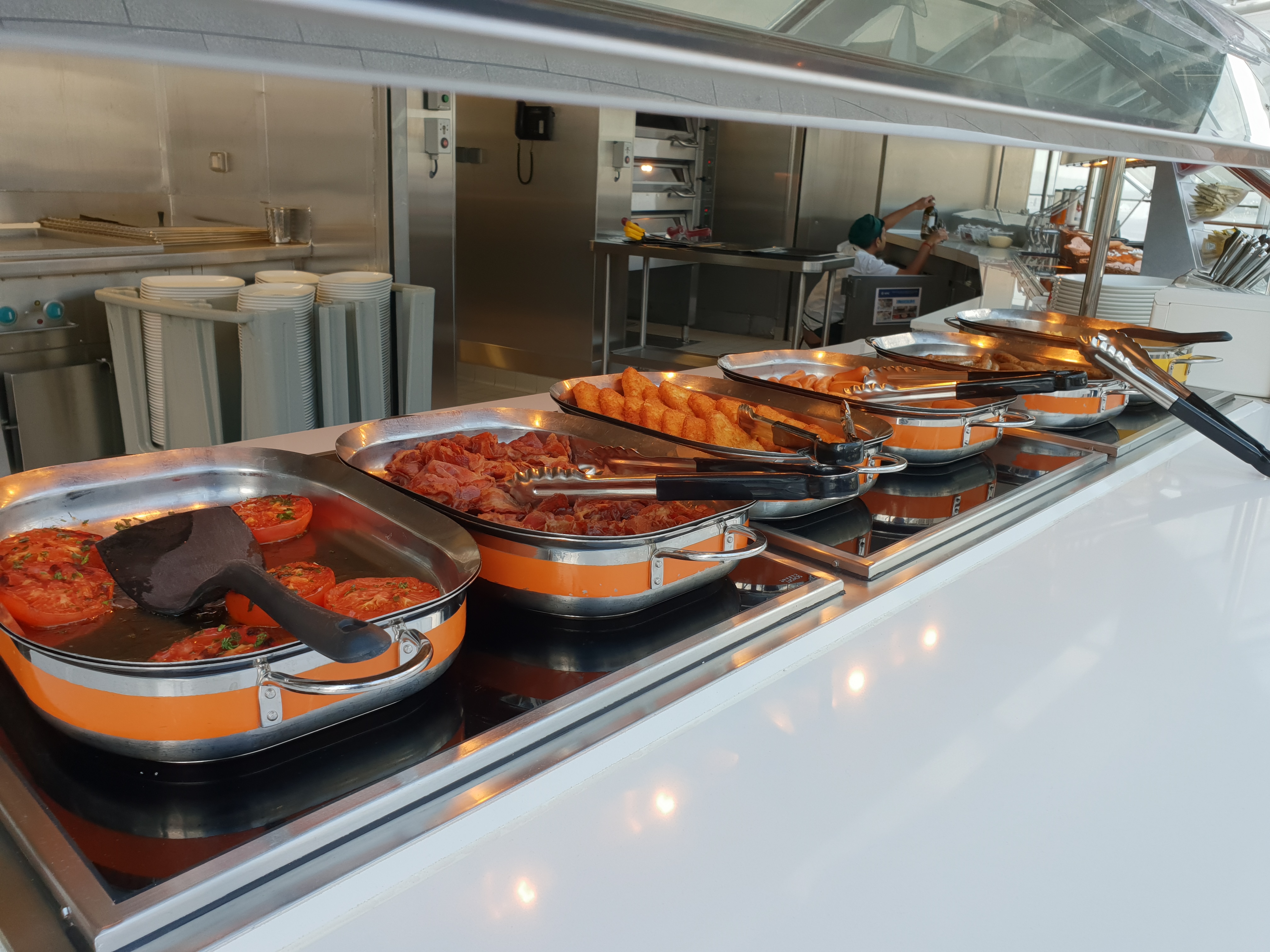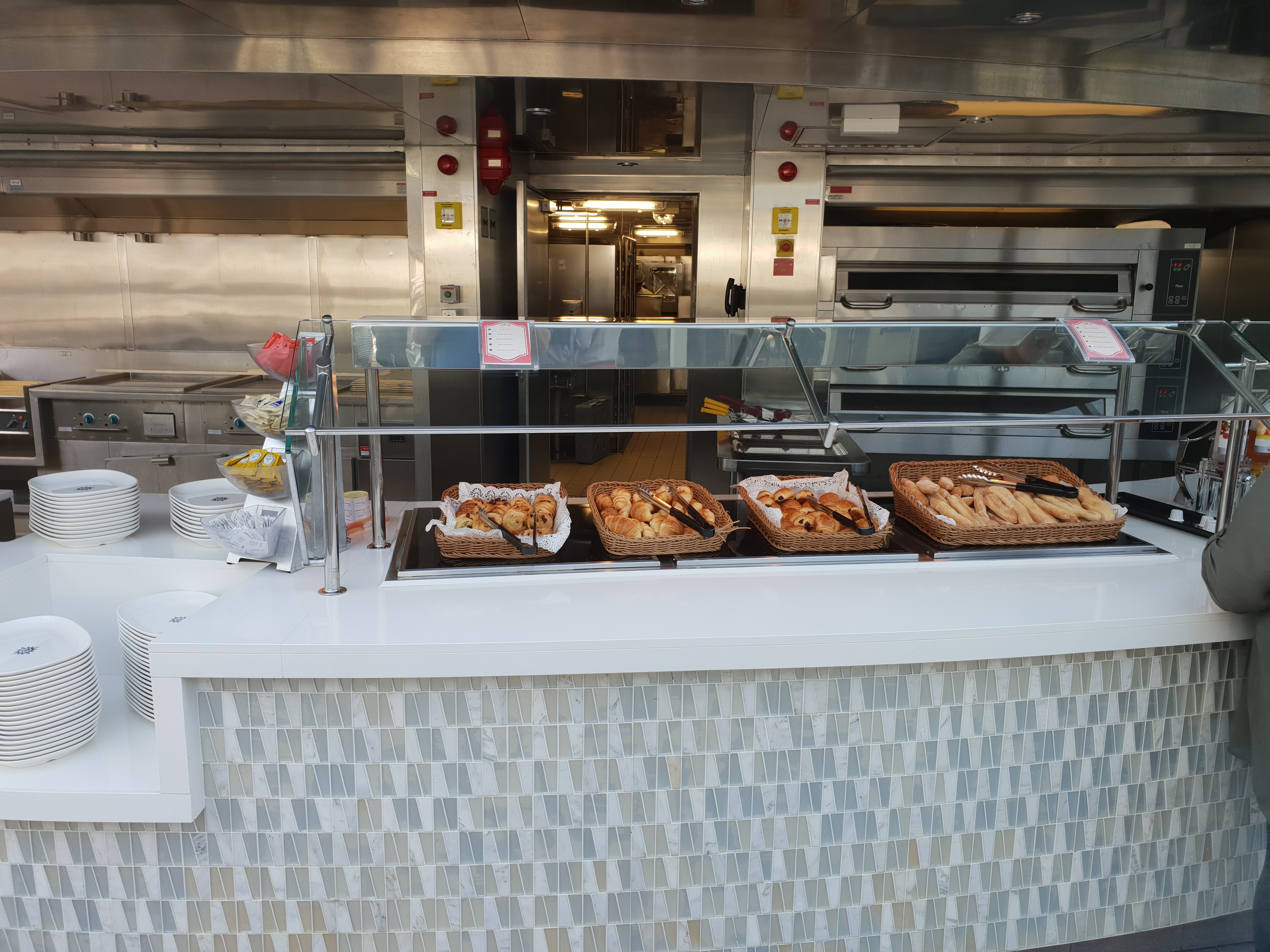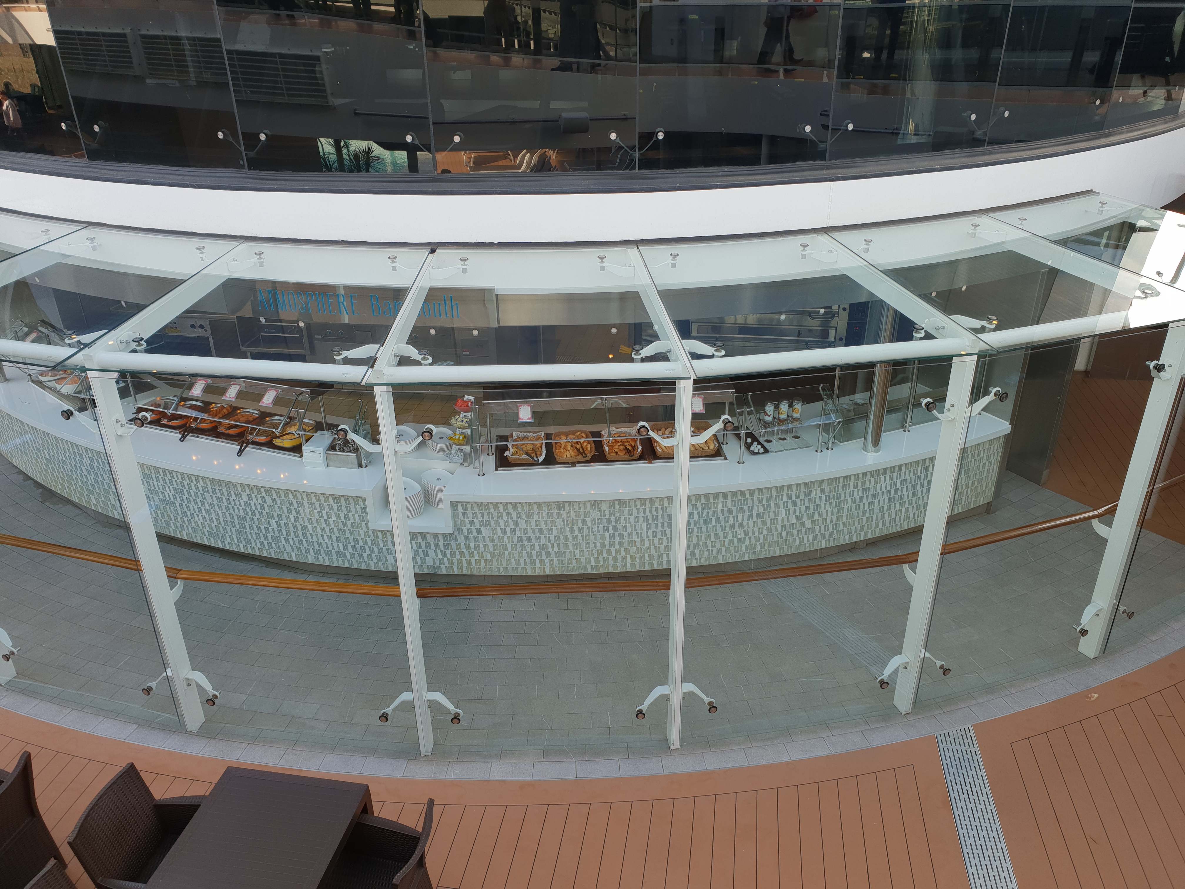 – På et skip som rommer 5701 gjester forventer vi også at det er flere steder å ta se en matbit uten ekstra kostnad. På Meraviglia er det 3 hovedspisesaler (med samme meny), Marketplace Buffet (som riktignok er åpent nesten hele døgnet) og Atmosphere Bar South på bassengdekket. Hvis man sammenligner det med for eksempel Harmony of the Seas eller Norwegian Breakaway føles tilbudet dårligere.