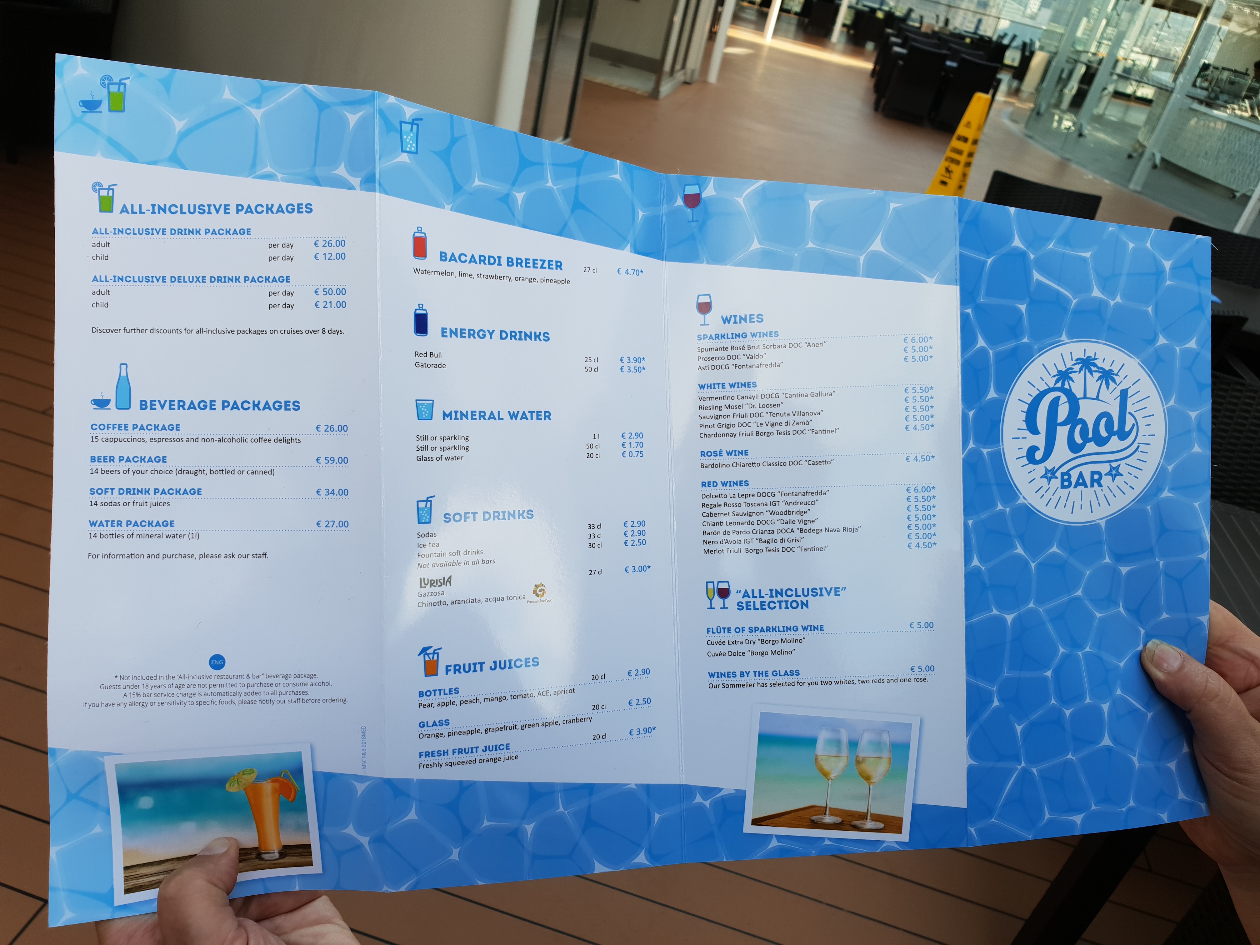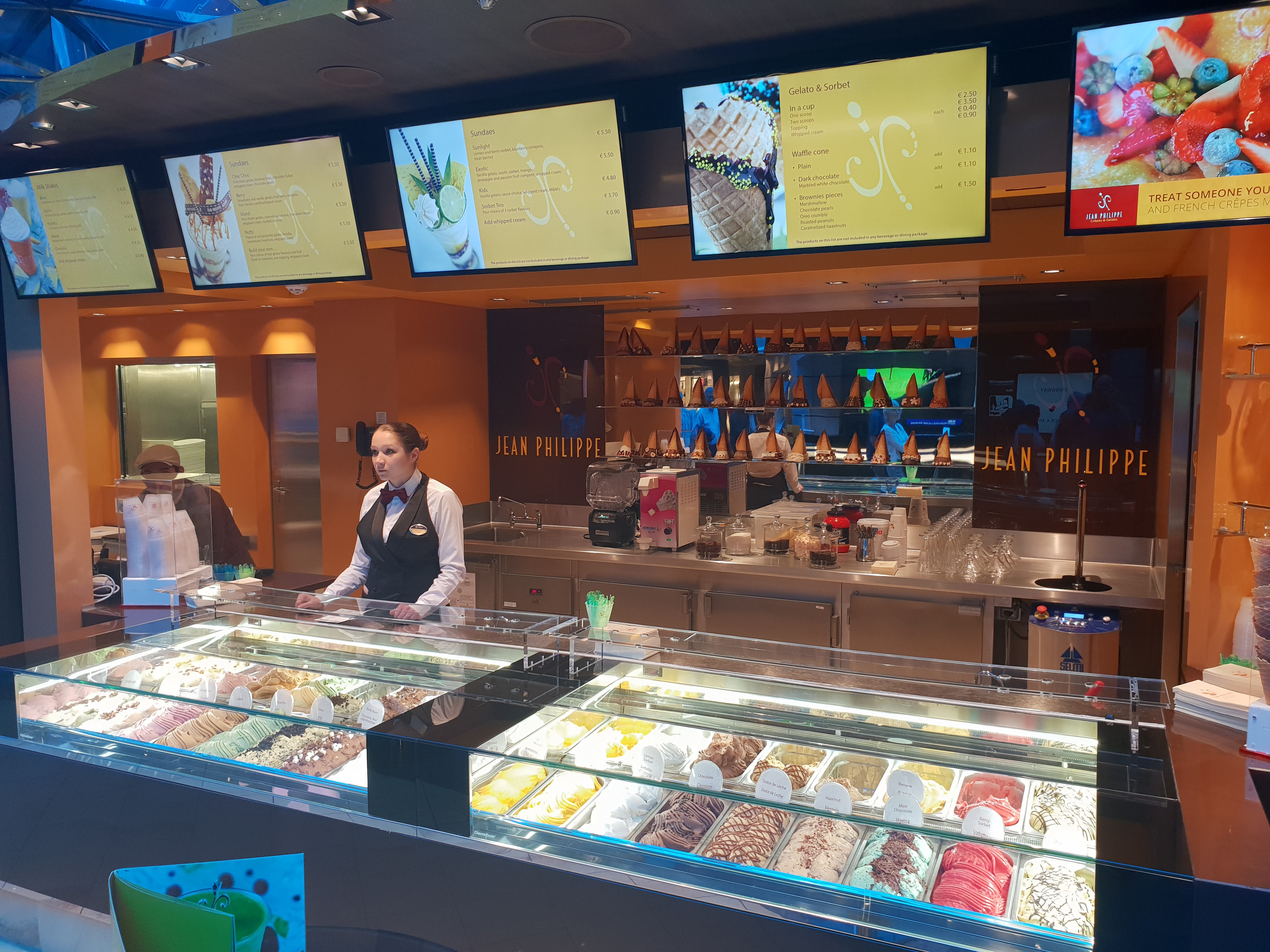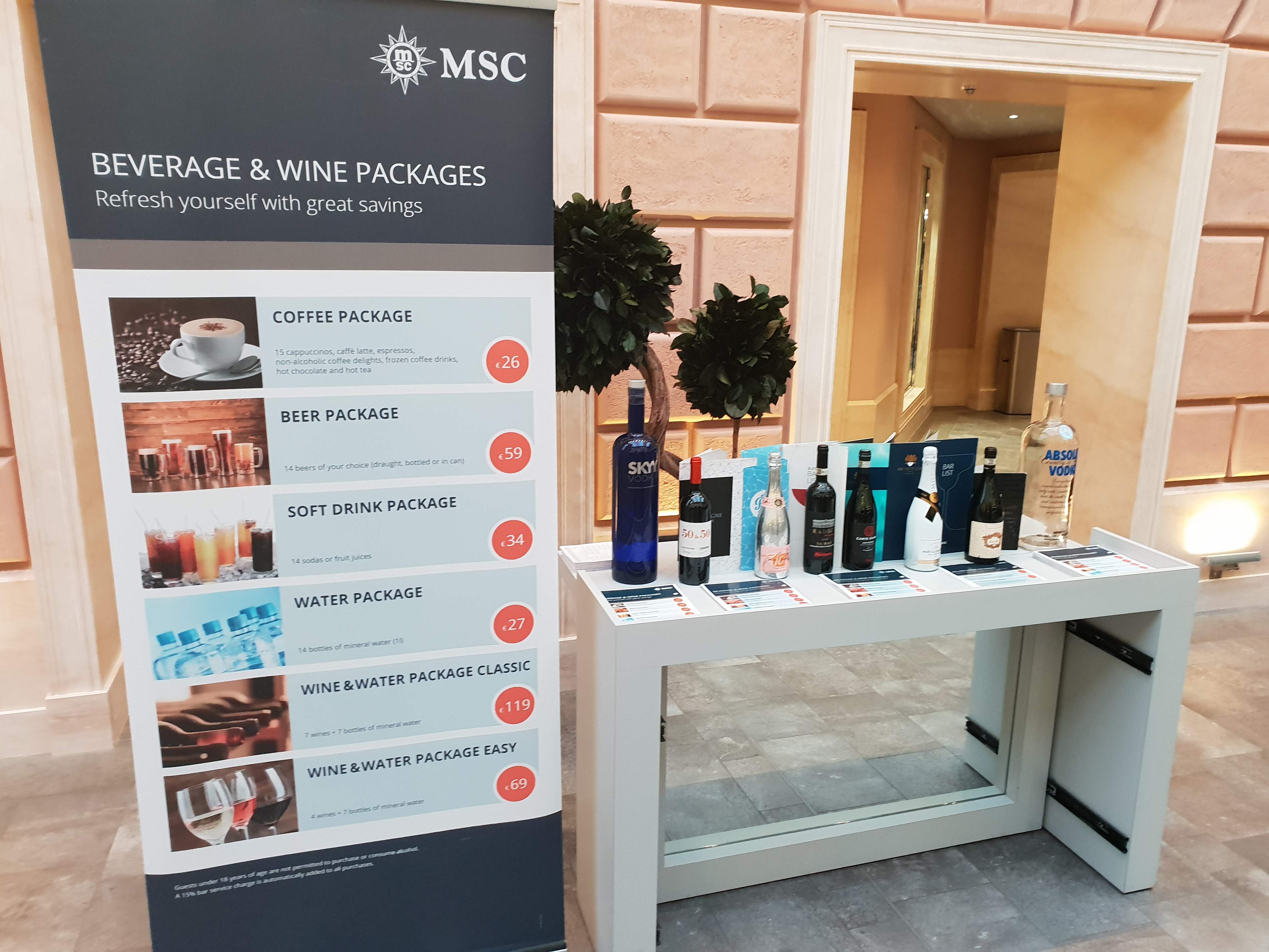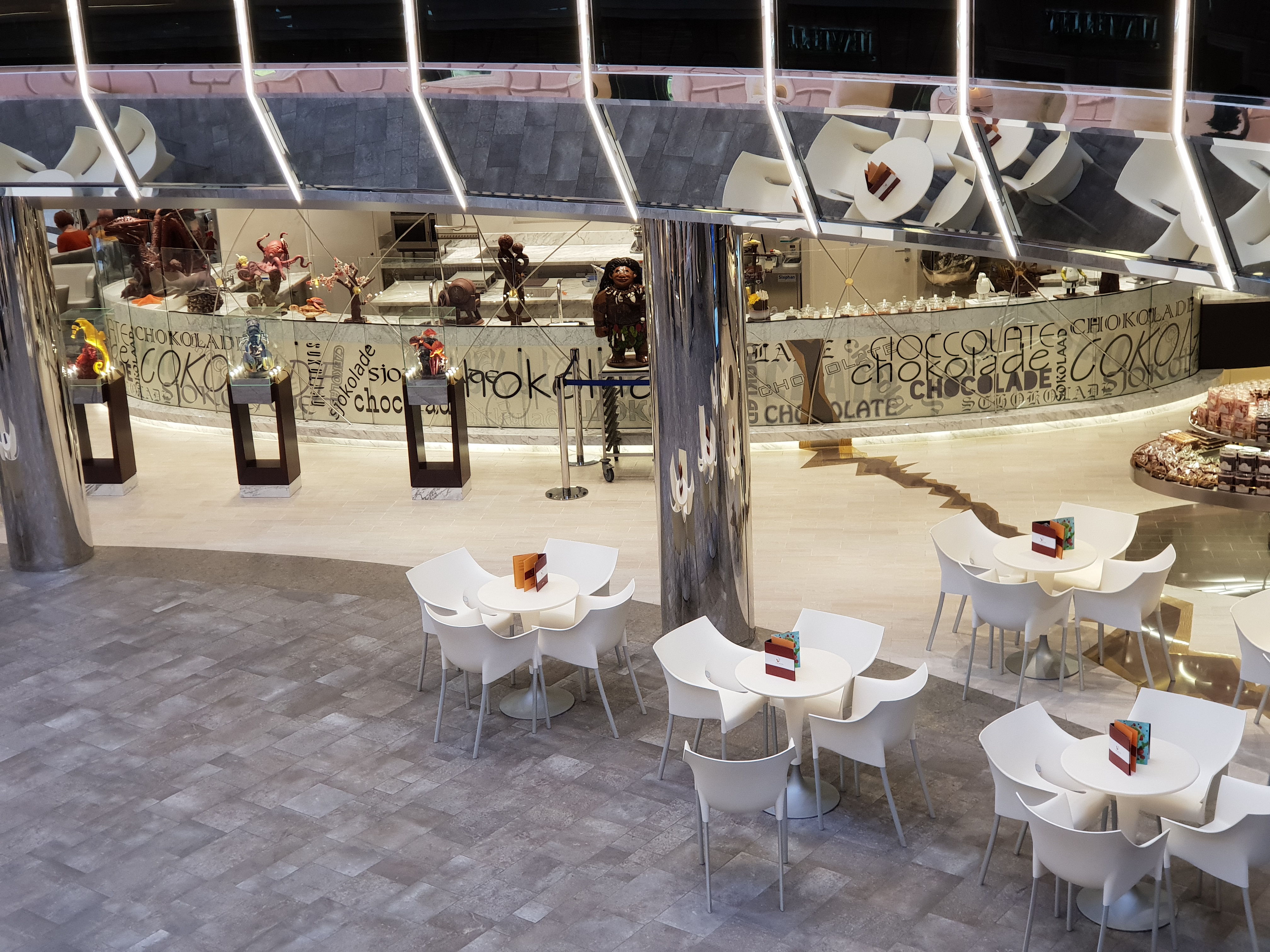 En engelsk pub hører nesten med på et cruiseskip nåEn engelsk pub hører nesten med på et cruiseskip nåBrass Anchor Pub har et godt utvalg av ølBrass Anchor Pub har et godt utvalg av ølHorizon Bar på dekk 18Atmosphere Bar SouthAtmosphere Bar South serverer også enkle grillretter inkludert i cruiseprisenAtmosphere Bar South serverer også enkle grillretter inkludert i cruiseprisenSittegrupper utenfor Atmosphere Bar SouthBar-meny. Prisene er forholdsvis rimeligeBar-meny. Prisene er forholdsvis rimeligeMarketplace Buffet er veldig romslig og med så mange bord burde det være lett å finne plassMarketplace Buffet er veldig romslig og med så mange bord burde det være lett å finne plassJean Philippe iskrembar/creperie frister forbipasserendeEn sjokoladecafé hvor man kan sitte ned eller kjøpe med se et sjokoladekunstverkEn sjokoladecafé hvor man kan sitte ned eller kjøpe med se et sjokoladekunstverkTo sjokoladeskilpadderDet er flere alternativer for drikkepakker ombord, og prisene er langt fra avskrekkendeDet er flere alternativer for drikkepakker ombord, og prisene er langt fra avskrekkendeEn av hovedspisesalene, Waves Restaurant på dekk 5CarpaccioOrecchiette med brokkoliCuban SandwichOstetallerkenSjokoladekakeButchers cut, en biff-restaurant på dekk 7 gir deg kjøtt av god kvalitetButchers cut, en biff-restaurant på dekk 7 gir deg kjøtt av god kvalitetButchers cut, en biff-restaurant på dekk 7 gir deg kjøtt av god kvalitetChampagne Bar