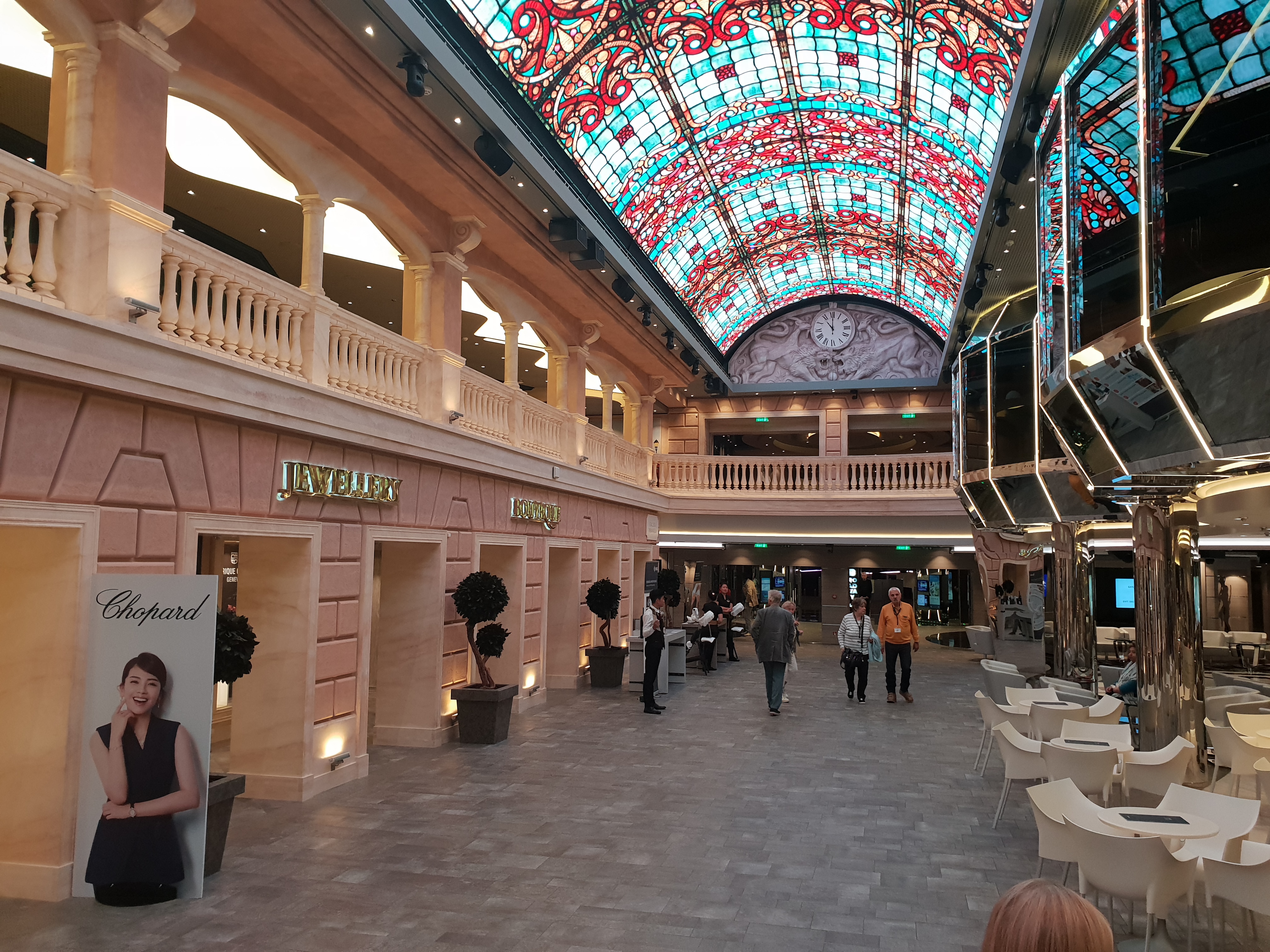 Resepsjonen i atriumet tar godt i mot gjesteneMSC sine kommende cruiseskipGalleria Meraviglia, med sin 80m lange led-skjerm i taket bringer tankene til en italiensk gateGalleria Meraviglia, med sin 80m lange led-skjerm i taket bringer tankene til en italiensk gateCasinoet ombord er som forventet stortEt cruiseskip vaskes kontinuerlig for å holde seg ren og pen